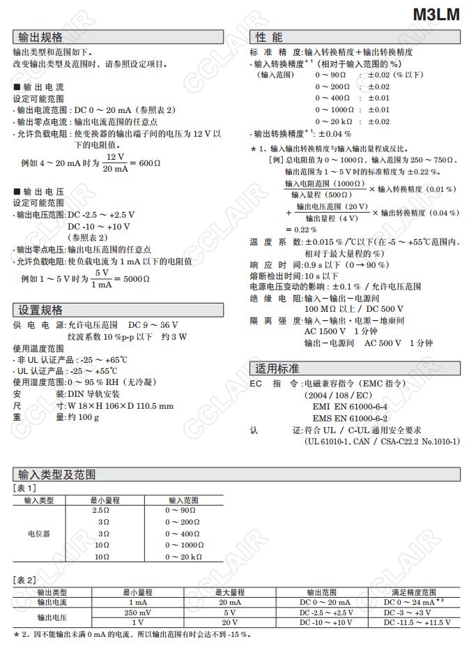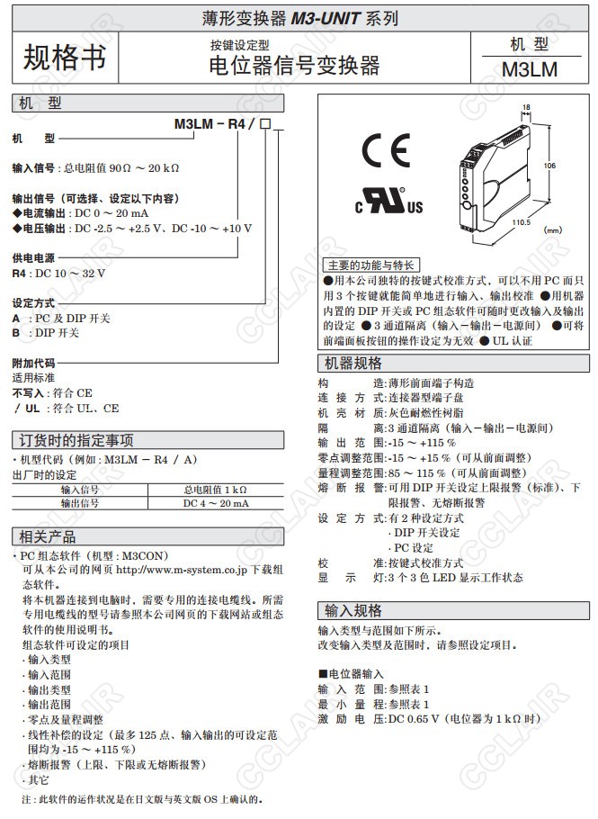 M3LM,M3LM-R4/A,M3LM-R4/B,M3LM-R4/A/UL,M3LM-R4/B/UL,電位器信號變換器(按鍵設定型)