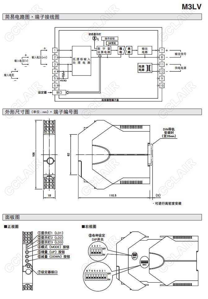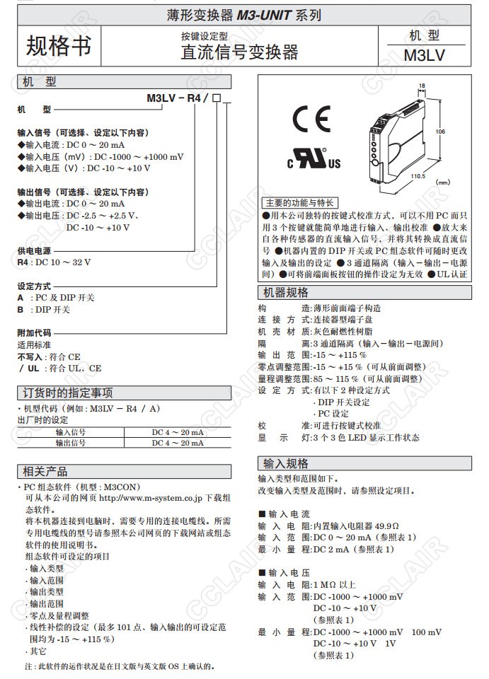M3LV,M3LV-R4/A,M3LV-R4/B,M3LV-R4/A/UL,M3LV-R4/B/UL,直流信號變換器(按鍵設定型)