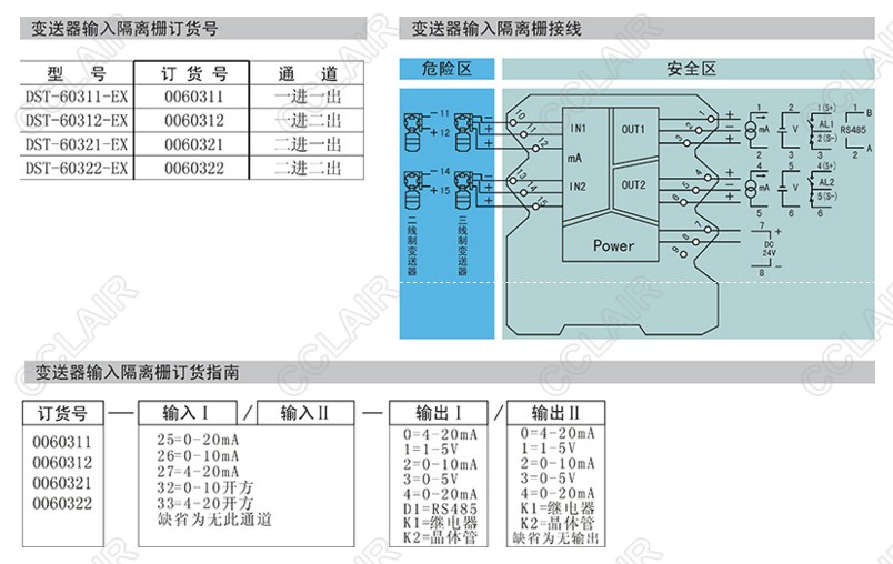 本產(chǎn)品給危險區(qū)的變送器提供隔離電源,并將變送器產(chǎn)生的電流信號轉(zhuǎn)換成電壓、電流、RS485信號或開關(guān)量信號,從危險區(qū)隔離傳送到安全區(qū),該產(chǎn)品需獨(dú)立供電。