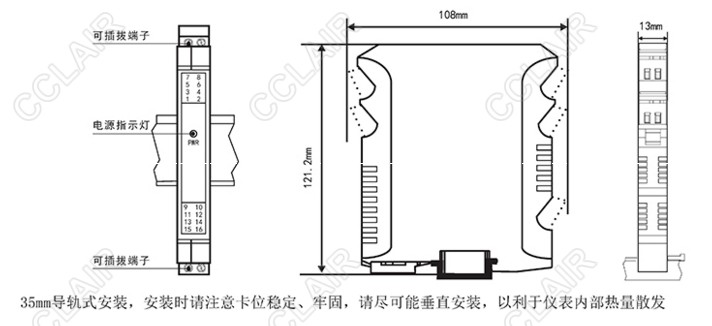 DST-81300系列薄型變送配電隔離器給二、三線制變送器提供隔離的電源電壓,將變送器產(chǎn)生的直流電流信號 經(jīng)過隔離傳送,轉(zhuǎn)換成所需的信號給其它儀表??梢耘c單元組合儀表及DCS、PLC等系統(tǒng)配套使用,給予現(xiàn)場儀表信 號隔離、信號轉(zhuǎn)換、信號分配、信號處理等,從而提高工業(yè)生產(chǎn)過程自動控制系統(tǒng)的抗干擾能力,保證系統(tǒng)的穩(wěn)定 性和可靠性。本產(chǎn)品品種分為一進(jìn)一出、一進(jìn)二出、二進(jìn)二出,且輸入、輸出磁隔離。