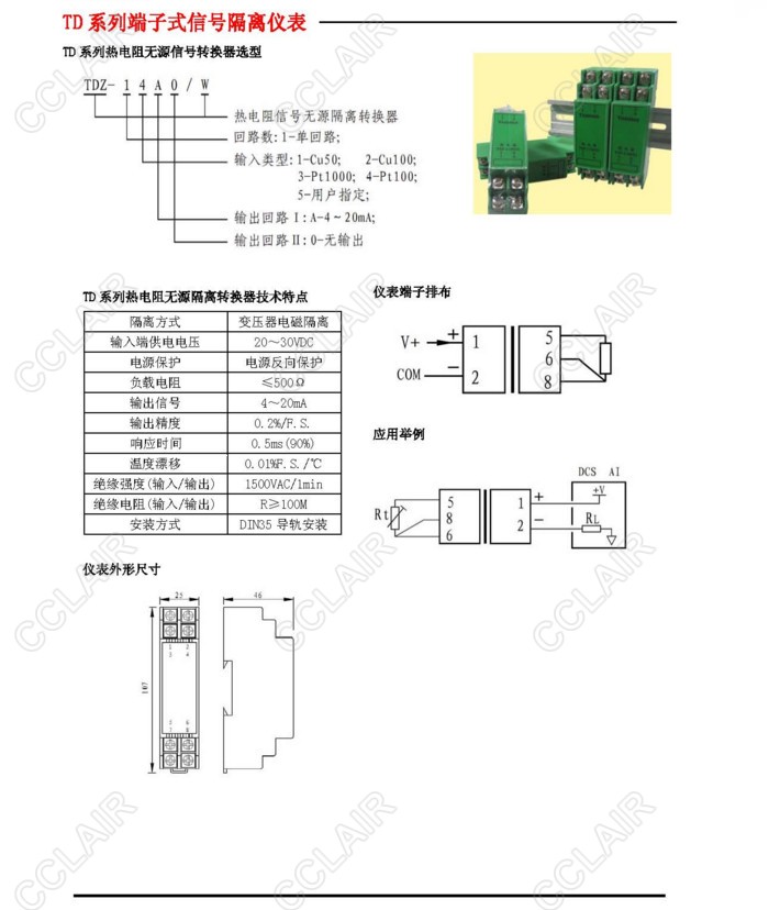 TDZ-11A0/W,TDZ-12A0/W,TDZ-13A0/W,TDZ-14A0/W,TDZ-15A0/W,熱電阻無源信號轉(zhuǎn)換器