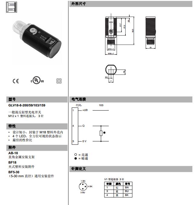 GLV18-8-200/59/103/159.漫反射型傳感器