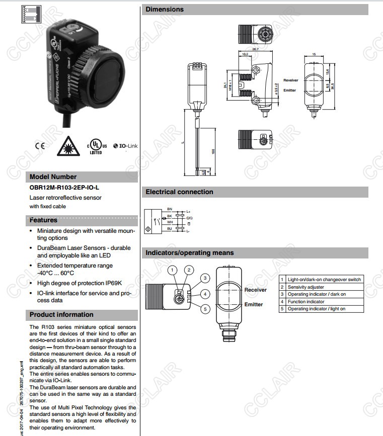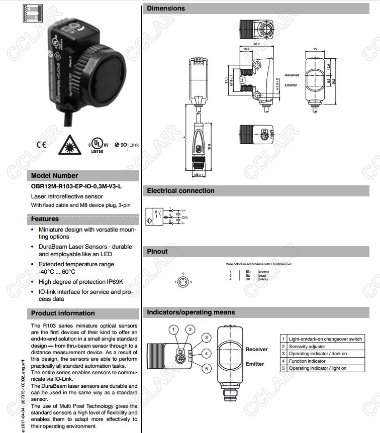 OBR12M-R103-2EP-IO-L,OBR12M-R103-EP-IO-0,3M-V3-L,反射板型傳感器