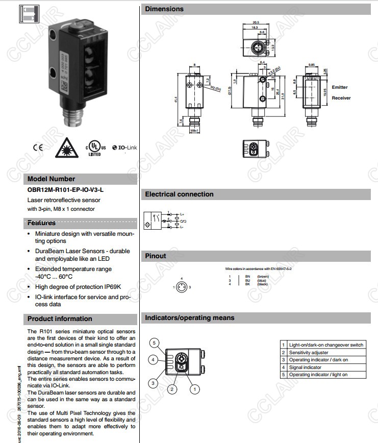 OBR12M-R101-EP-IO-V3-L,反射板型傳感器