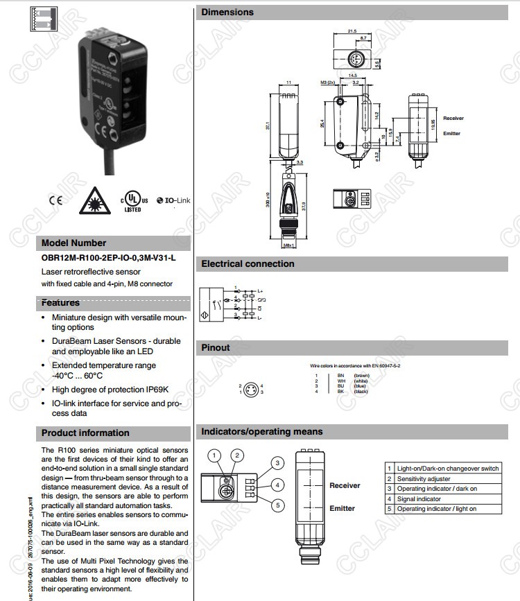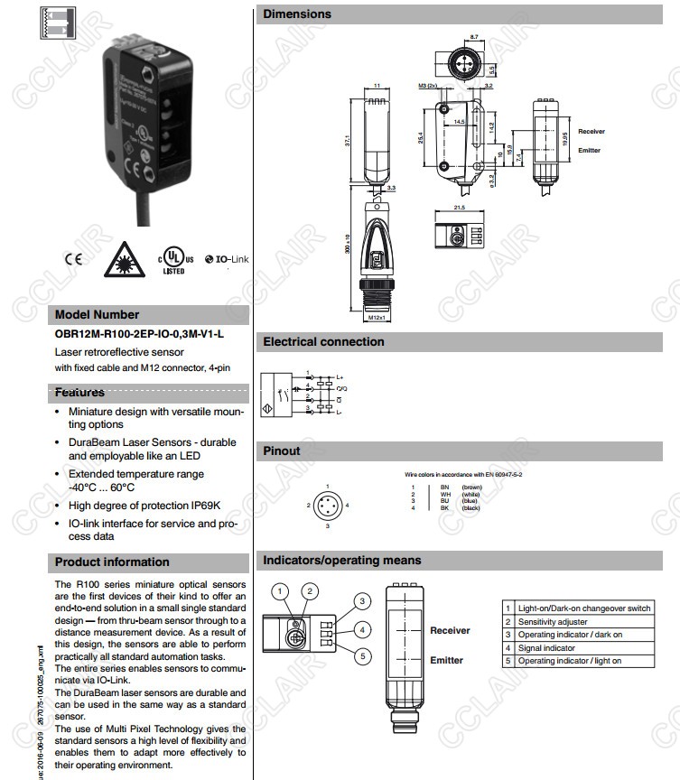 OBR12M-R100-2EP-IO-0,3M-V1-L,OBR12M-R100-2EP-IO-0,3M-V31-L,OBR12M-R100-EP-IO-0,3M-V3-L,反射板型傳感器