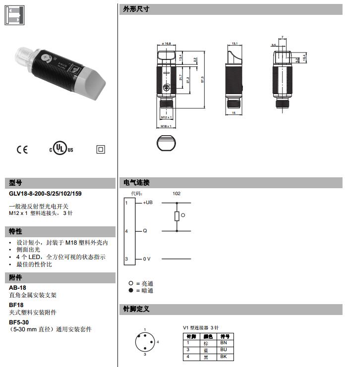 GLV18-8-200-S/25/102/159,漫反射型傳感器