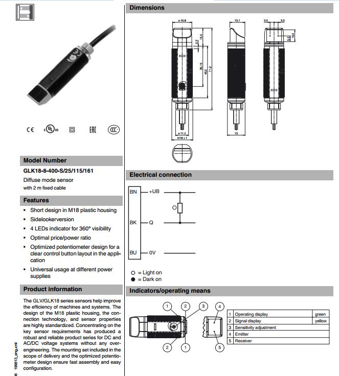 GLK18-8-400-S/25/115/161,漫反射型傳感器