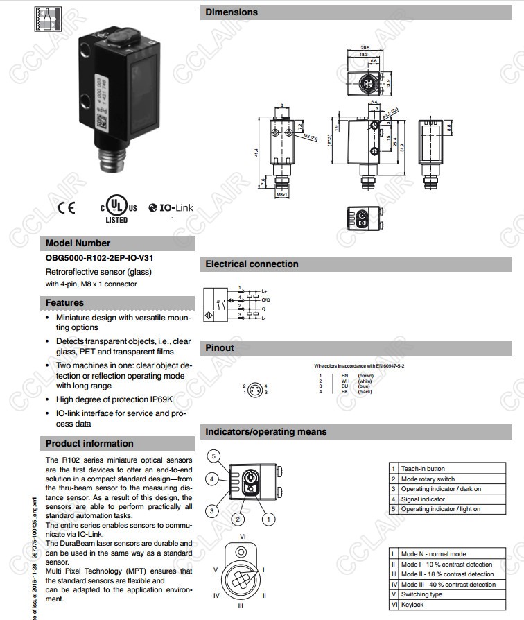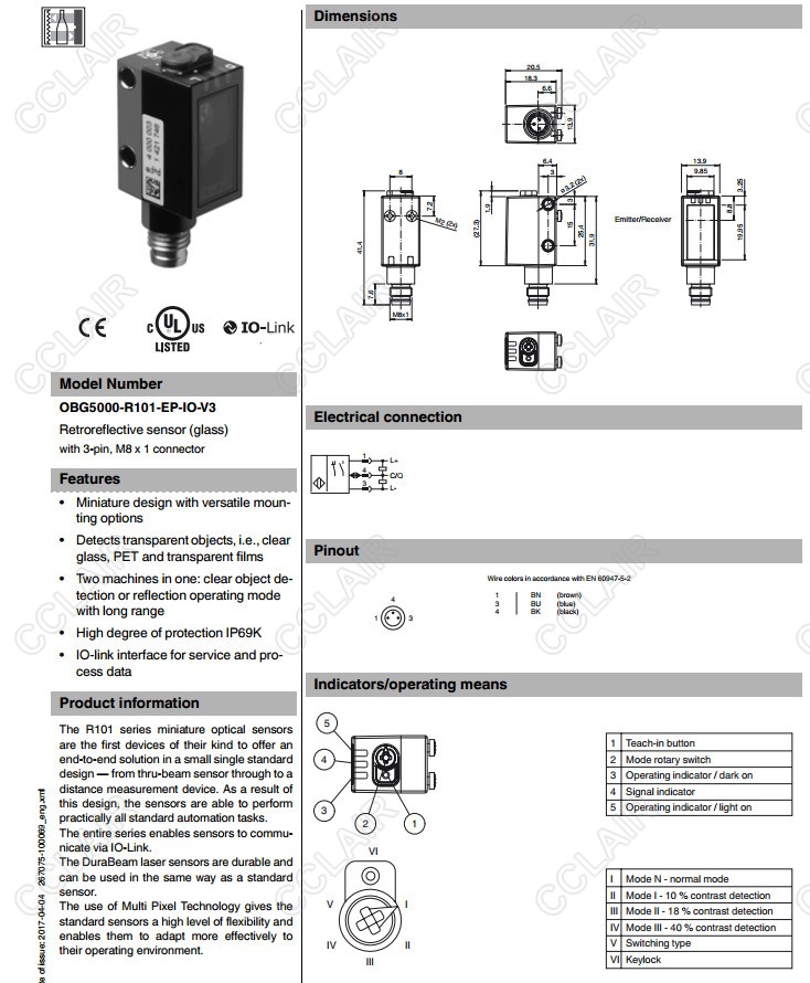 OBG5000-R101-EP-IO-V3,OBG5000-R102-2EP-IO-V31,反射板傳感器(玻璃)