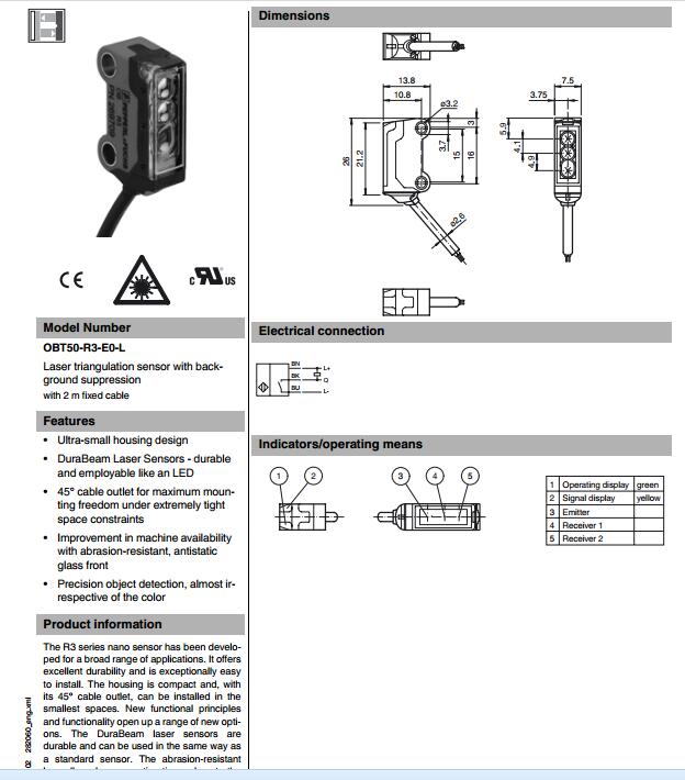 OBT50-R3-E0-L,漫反射型傳感器