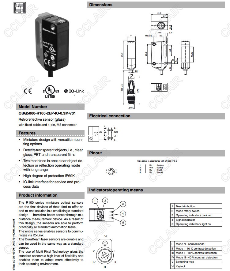 OBG5000-R100-2EP-IO-0,3M-V1,OBG5000-R100-2EP-IO-0,3M-V31,OBG5000-R100-EP-IO-0,3M-V3,反射板型傳感器