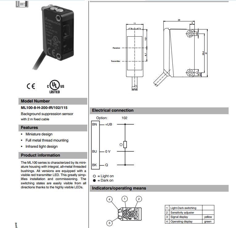 ML100-8-H-200-IR/102/115,漫反射型傳感器