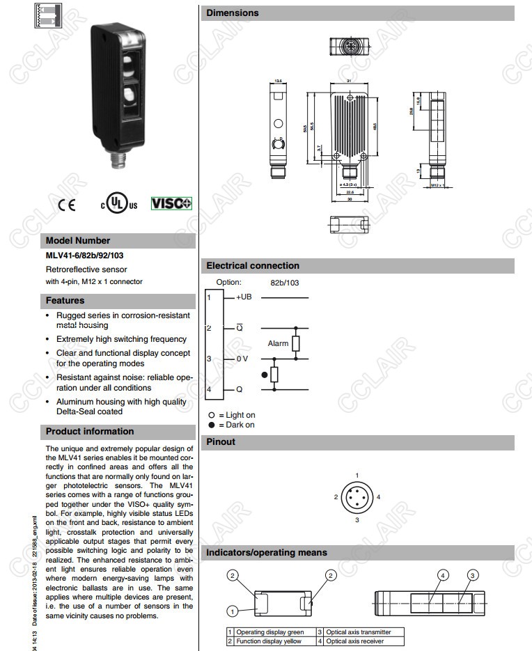 MLV41-6/25/95/136,MLV41-6/82b/92/103,MLV41-6/92/102/126b,反射板型傳感器