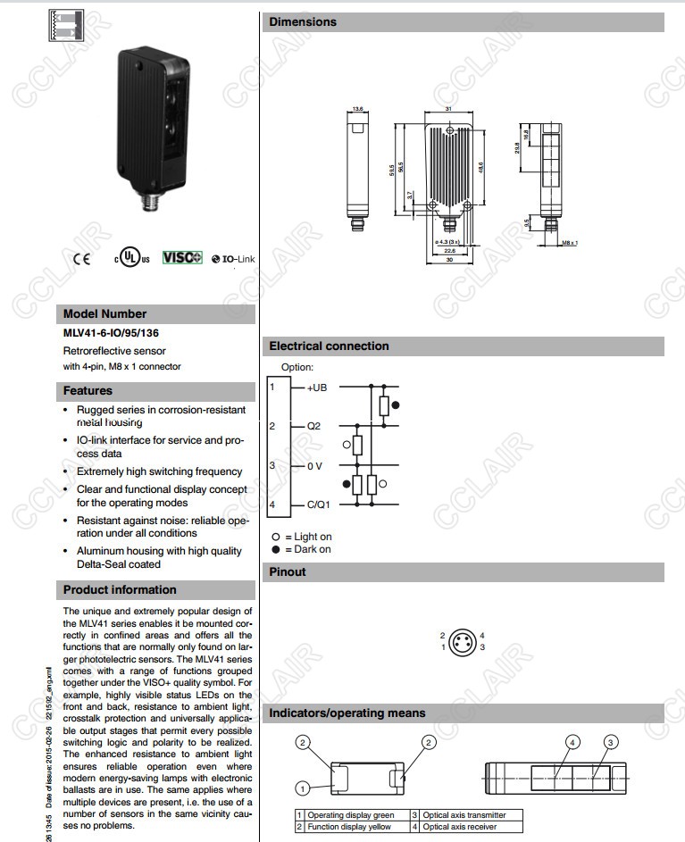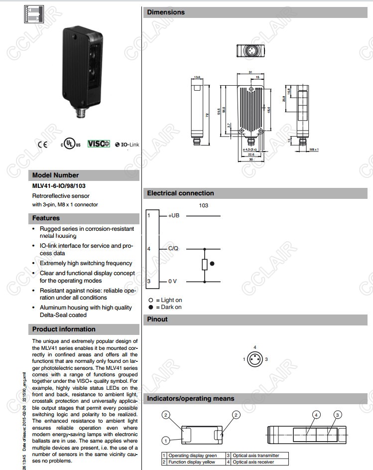 MLV41-6-IO/95/136,MLV41-6-IO/98/103,MLV41-6/25/70/136,反射板型傳感器
