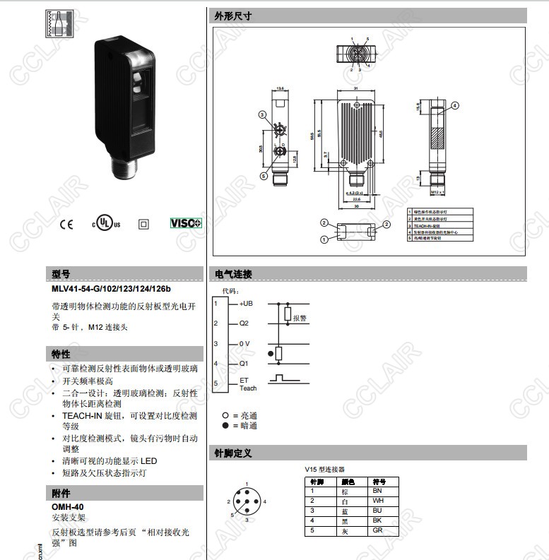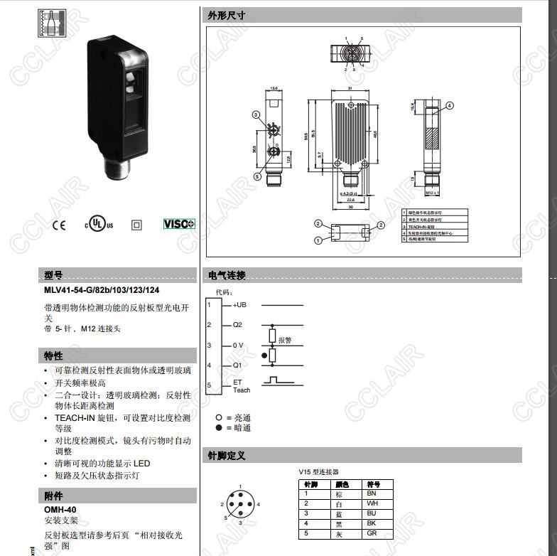 MLV41-54-G/102/123/124/126g,MLV41-54-G/82b/103/123/124,反射板型傳感器