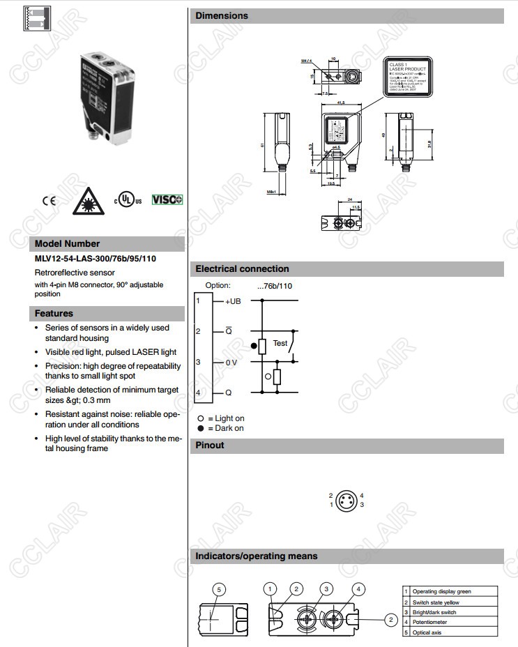 MLV12-54-LAS-300/76b/95/110,反射板型傳感器