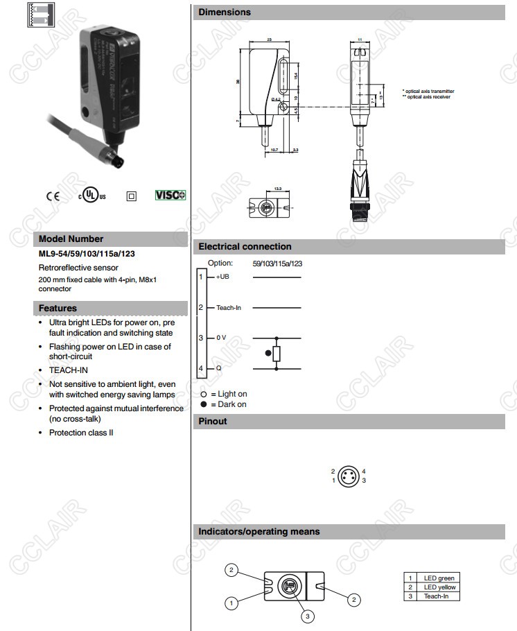 ML9-54/59/103/115a/123,ML9-54/59/103/115a/123/134a,反射板型傳感器