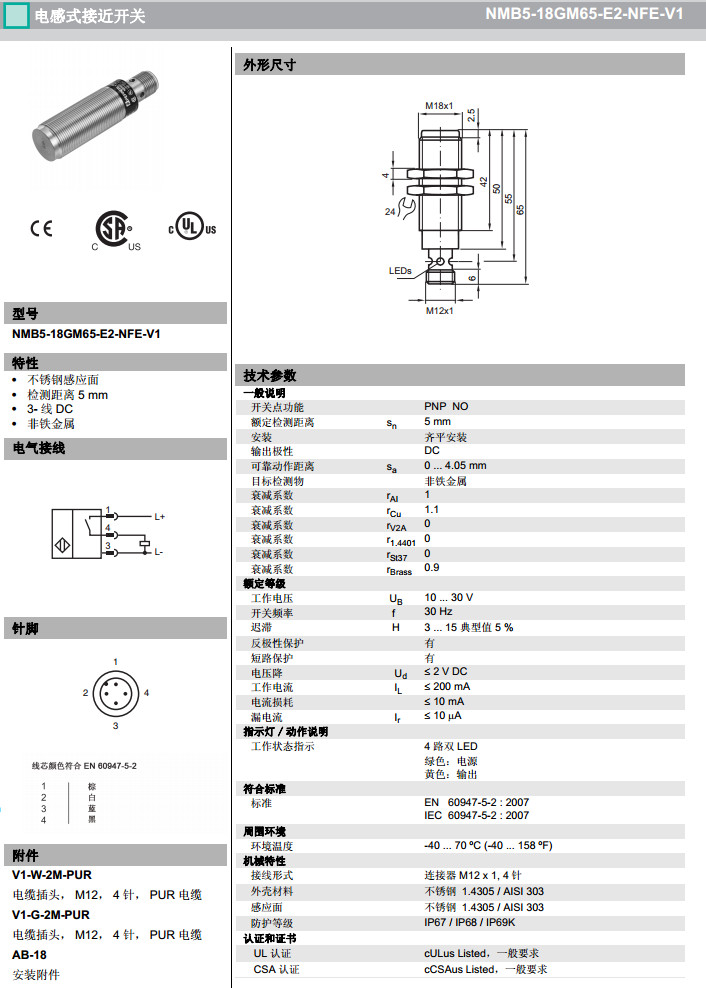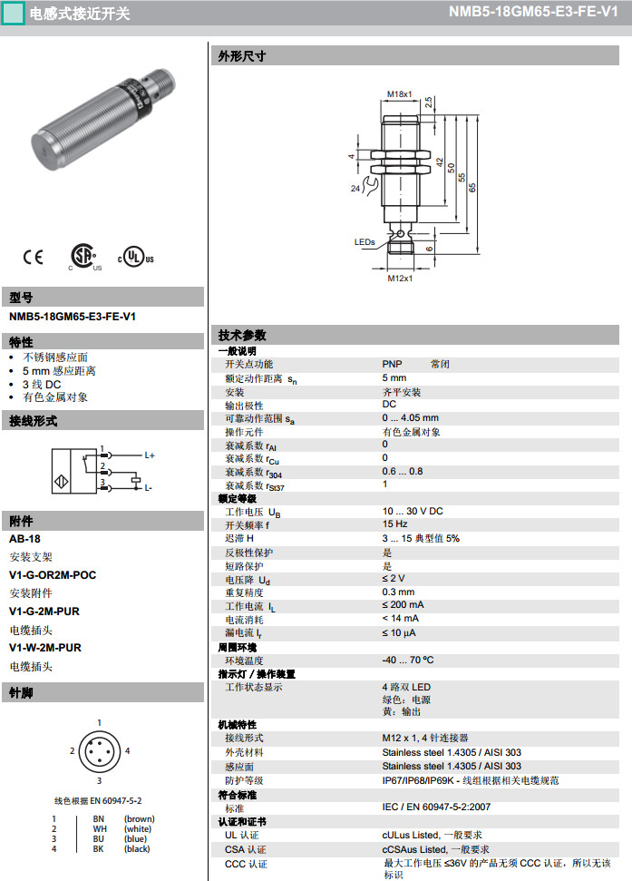 NMB5-18GM65-E0-FE-V1,NMB5-18GM65-E2-FE-V1,NMB5-18GM65-E2-NFE-V1,感應式傳感器