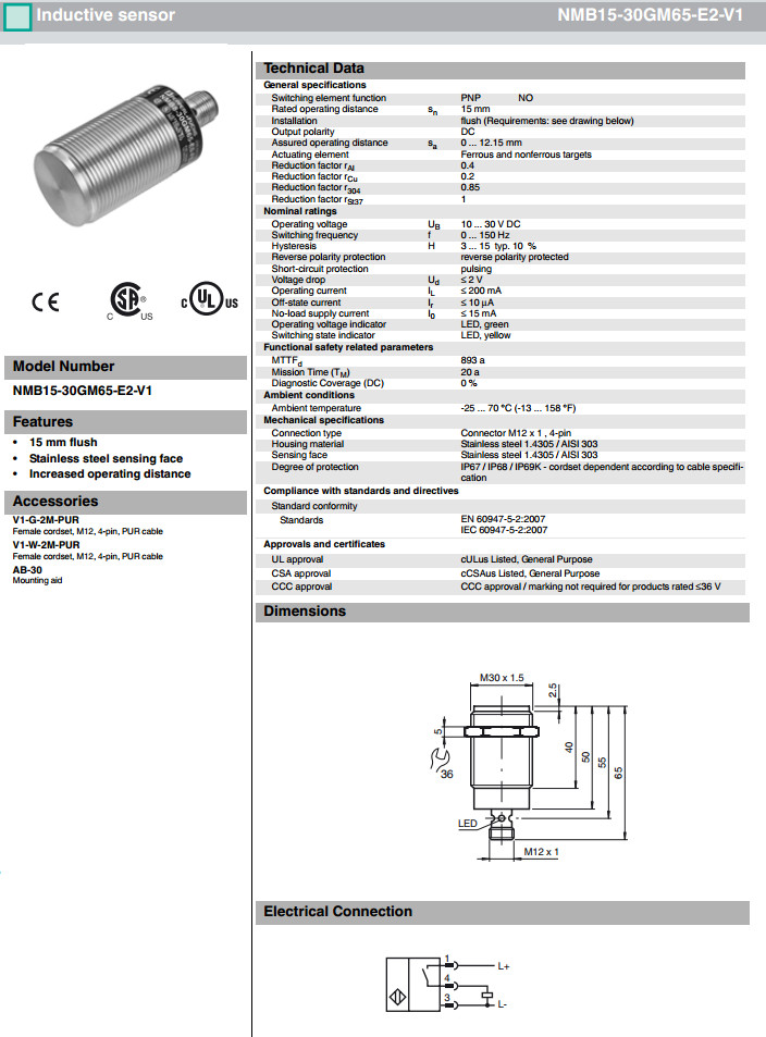 NMB15-30GM65-E2-V1感應(yīng)式傳感器