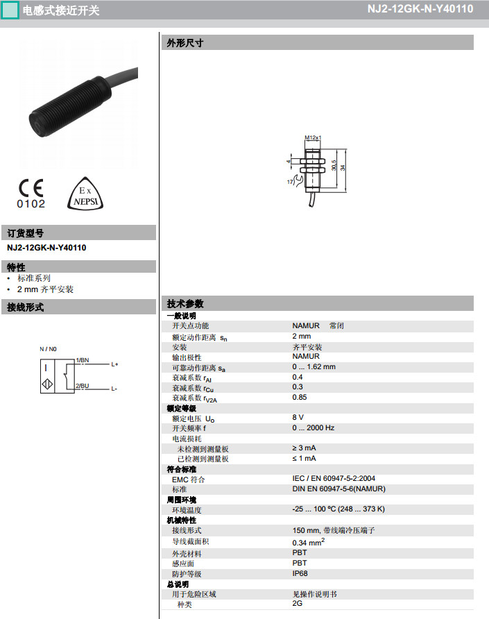NJ2-12GK-N-Y40110感應(yīng)式傳感器