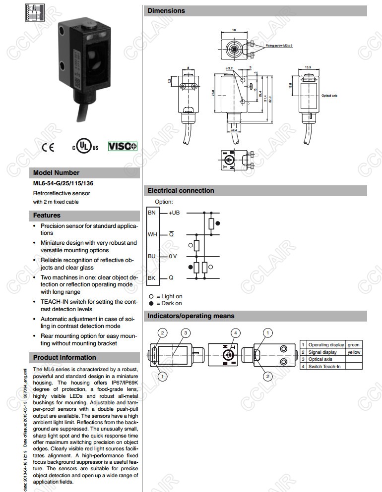 ML6-54-G/25/115/136,反射板型傳感器