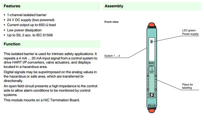 HiC2031,模擬量輸出安全柵