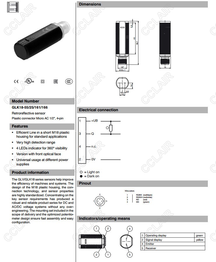 GLK18-55/25/161/166,反射板型傳感器