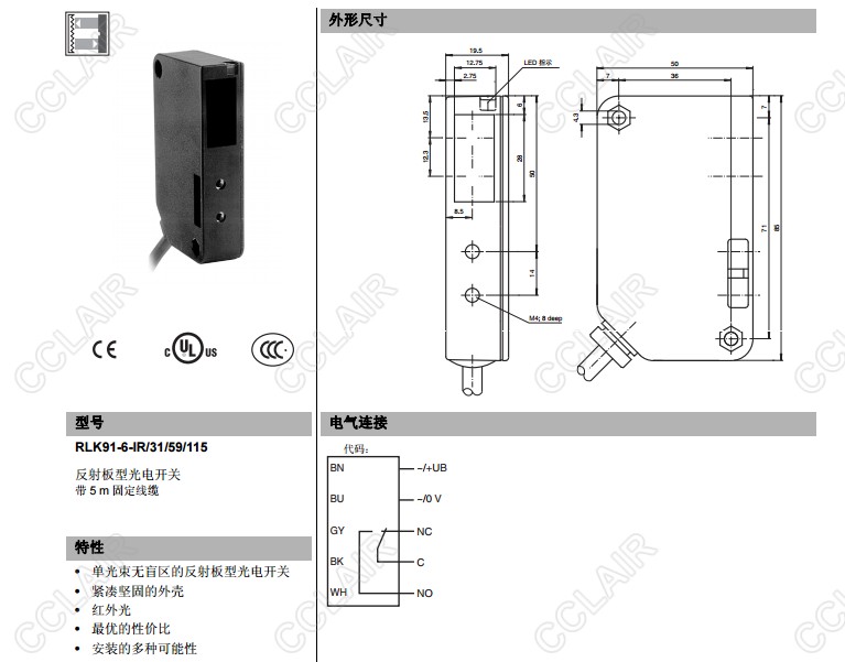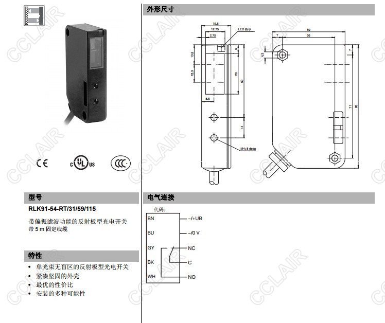 RLK91-54-RT/31/59/115,RLK91-6-IR/31/59/115,反射板型傳感器