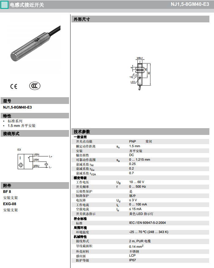 NJ1,5-8GM40-E3感應(yīng)式傳感器