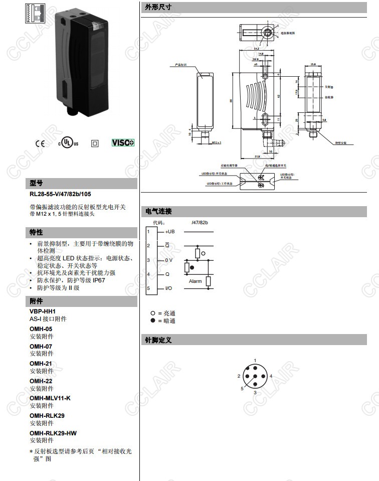 RL28-55-V/47/82b/105,反射板型傳感器