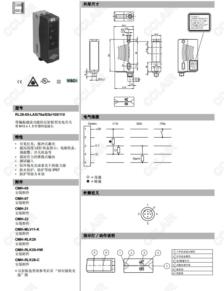 RL28-55-LAS/76a/82b/105/110,反射板型傳感器