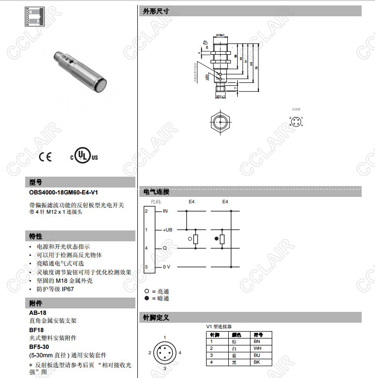 OBS4000-18GM60-E4-V1,反射板型傳感器
