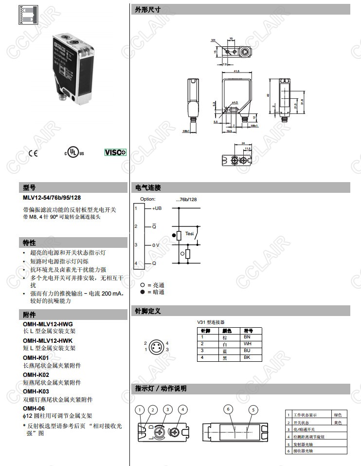 MLV12-54/76b/95/128,反射板型傳感器