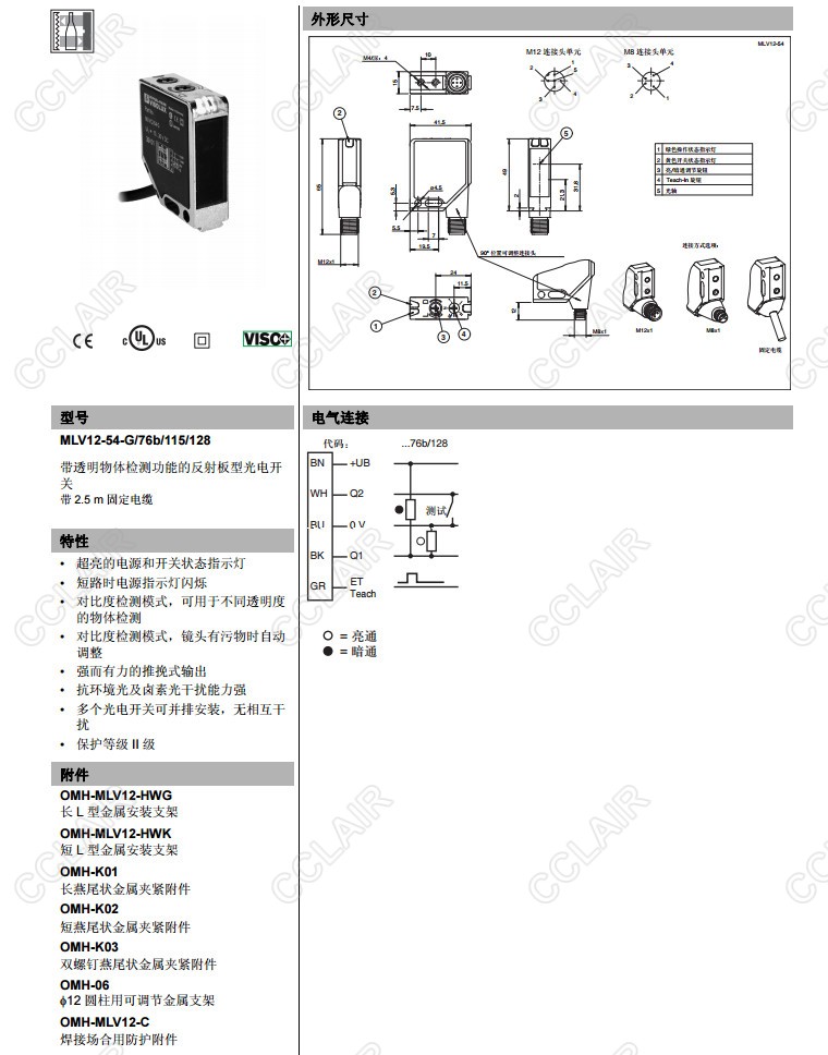 MLV12-54-G/76b/115/128,反射板型傳感器