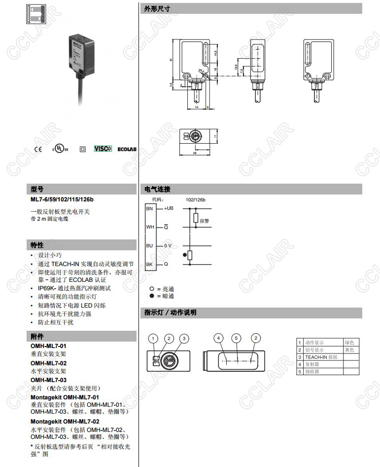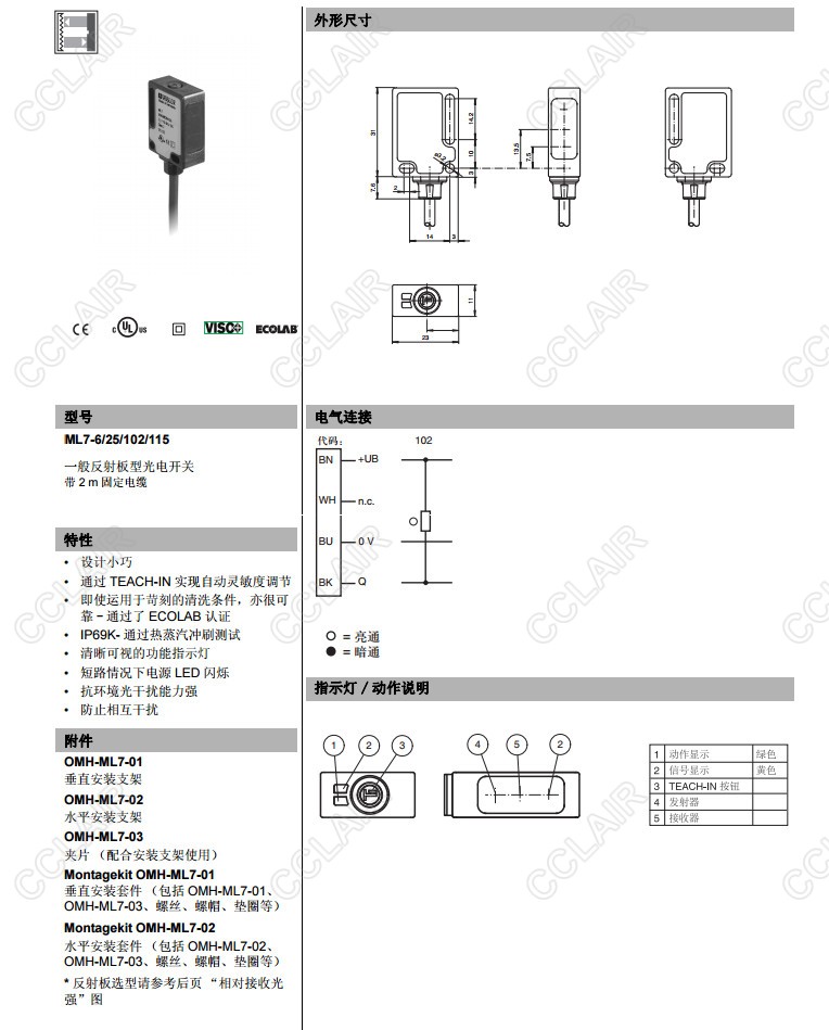 ML7-6/25/102/115,ML7-6/59/102/115/126,反射板型傳感器