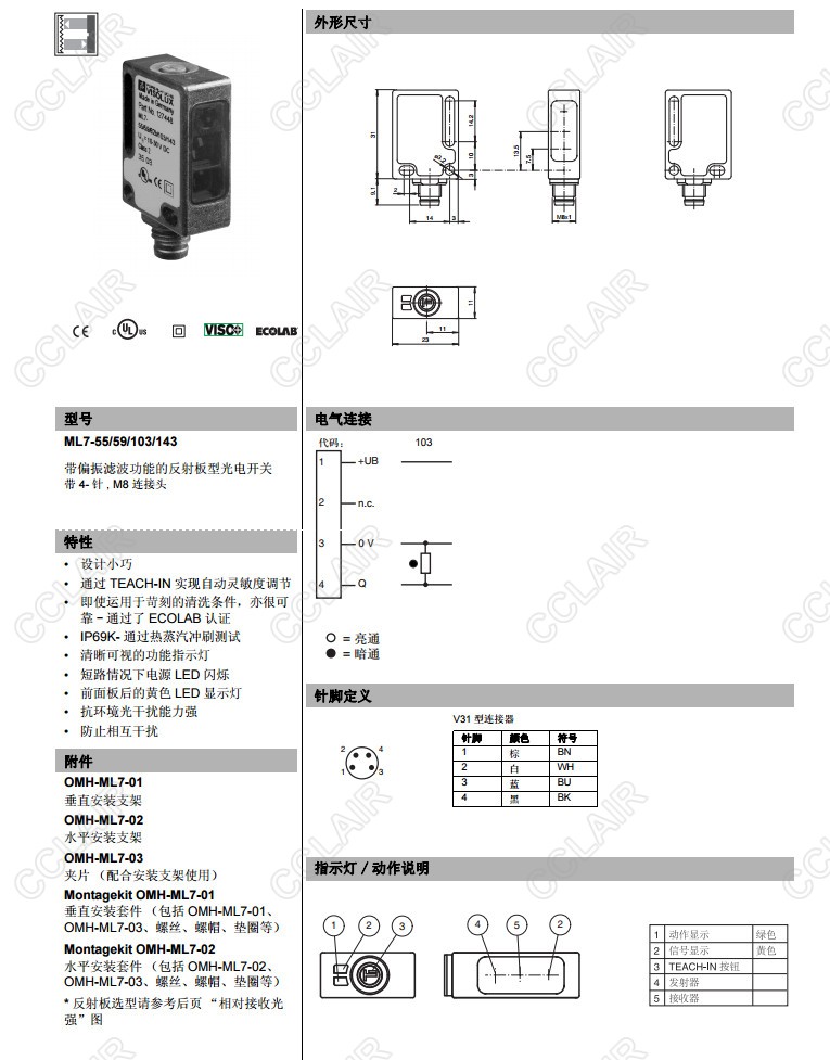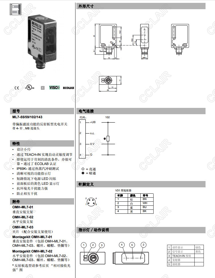 ML7-55/59/102/143,ML7-55/59/103/143,反射板型傳感器