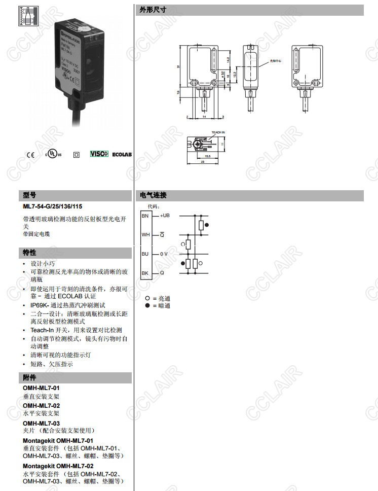 ML7-54-G/25/115/127,ML7-54-G/25/115/127,ML7-54-G/82b/103/115,反射板型傳感器