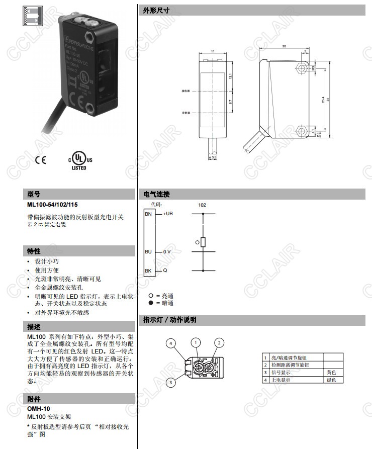 ML100-54/102/115,ML100-54/103/115,反射板型傳感器