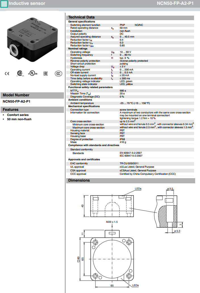 NCN50-FP-A2-P1感應(yīng)式傳感器