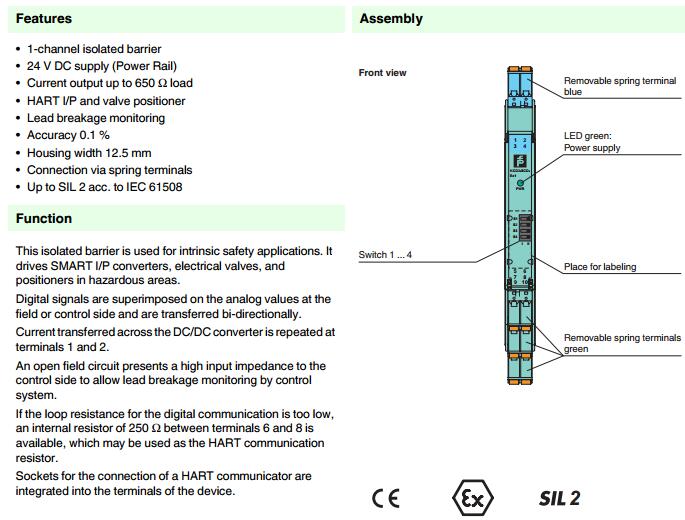 KCD2-SCD-Ex1.SP,模擬量輸出安全柵
