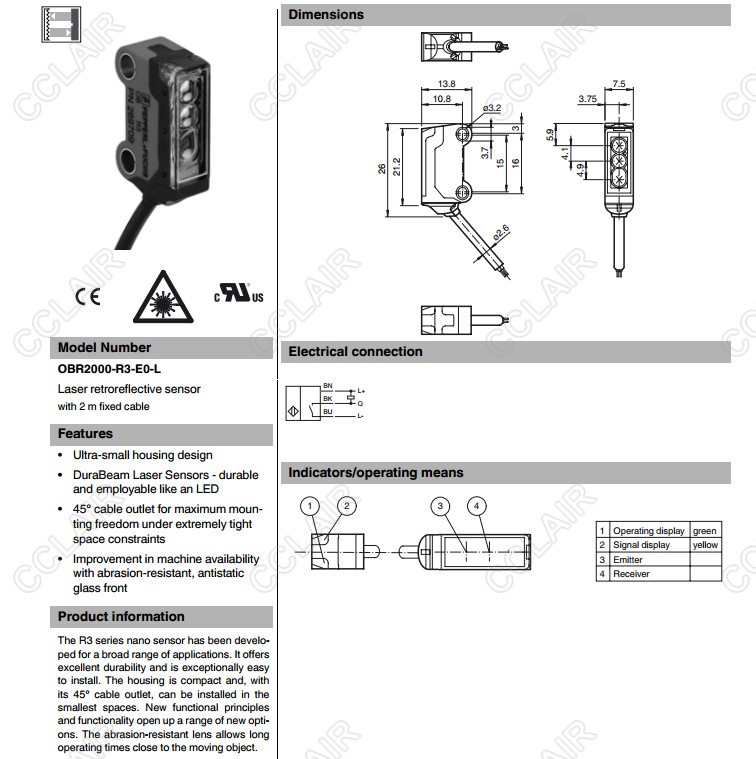 OBR2000-R3-E0-L,反射板型傳感器