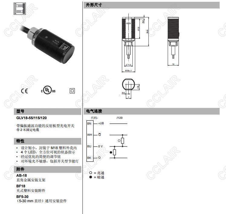 GLV18-55/115/120,反射板型傳感器