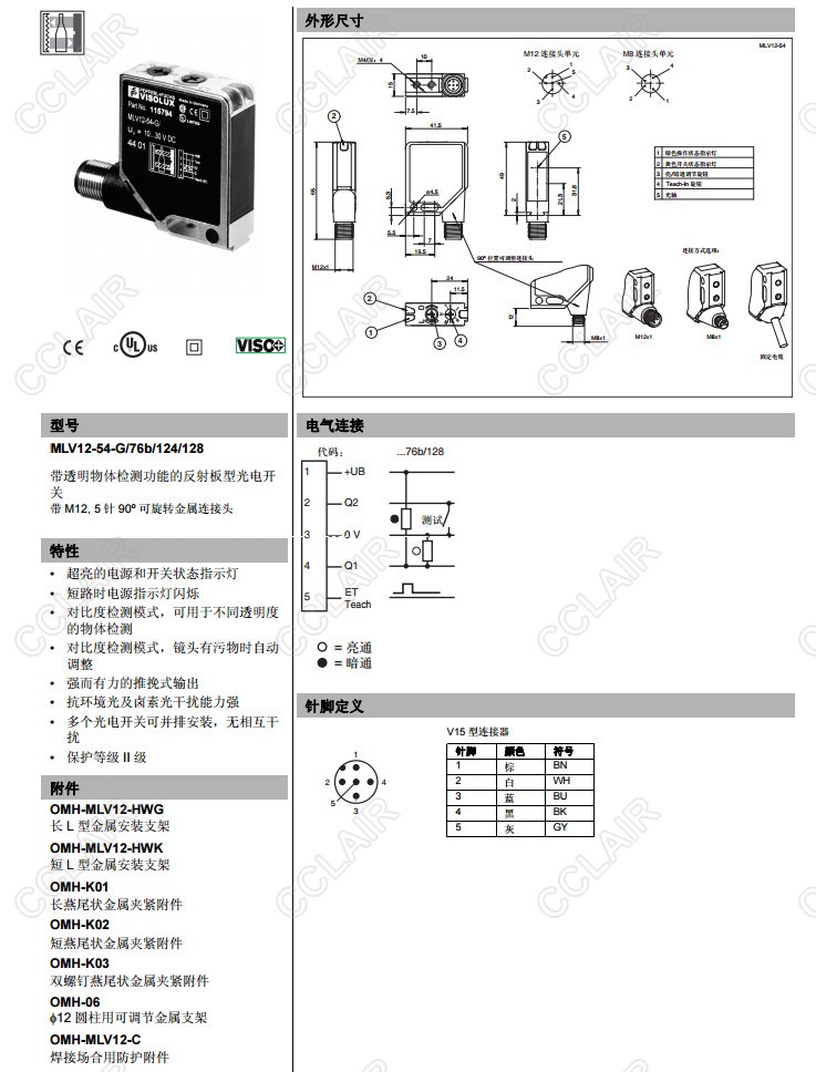 MLV12-54-G/76b/124/128,反射板型光電開關(guān)