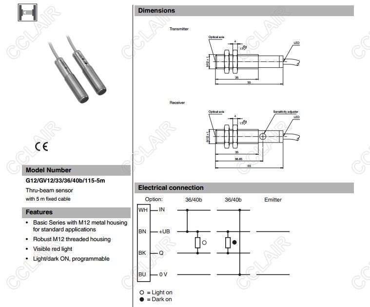 G12/GV12/33/36/40b/115-5m,對射型光電開關