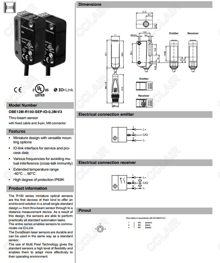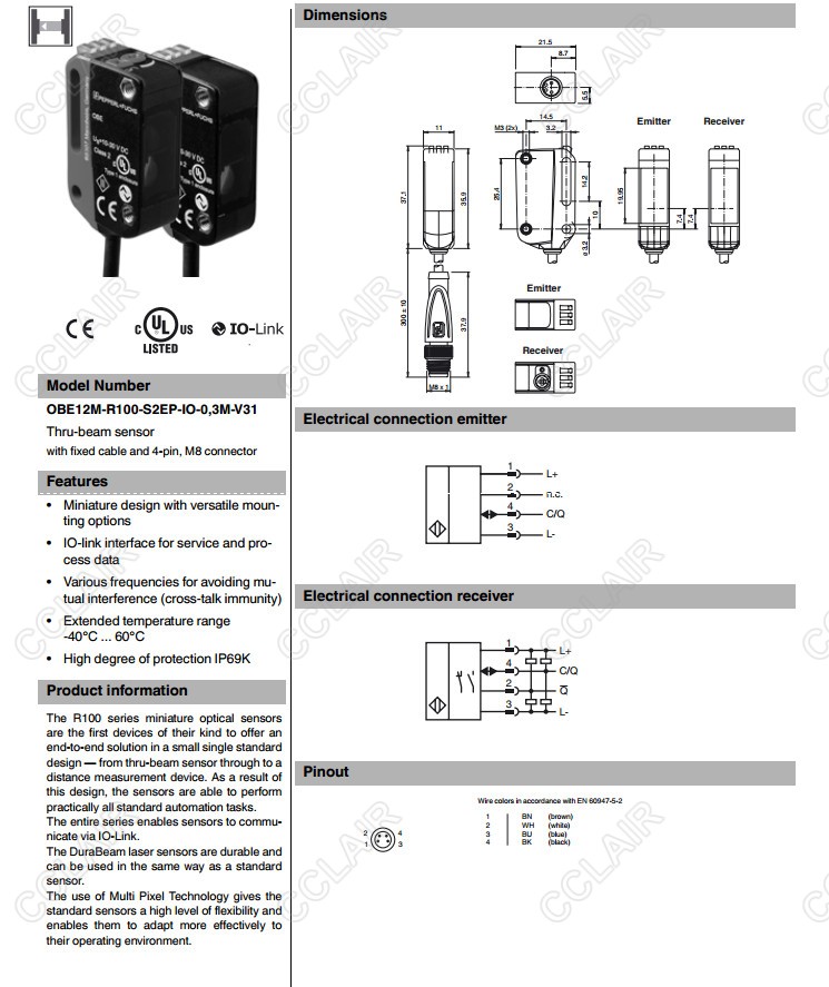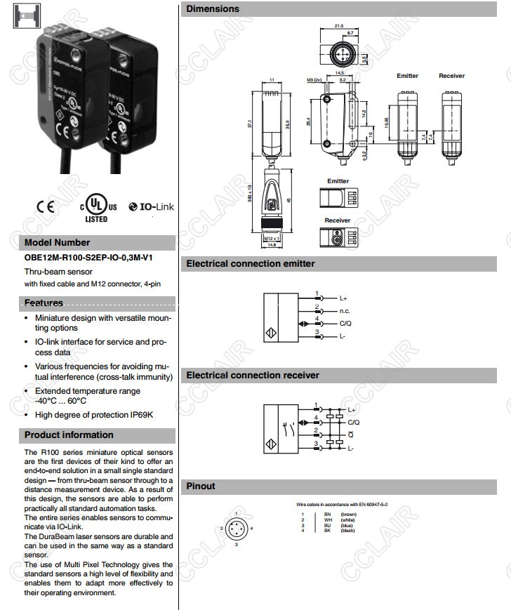 OBE12M-R100-S2EP-IO-0,3M-V1,OBE12M-R100-S2EP-IO-0,3M-V31,OBE12M-R100-SEP-IO-0,3M-V3,對(duì)射型傳感器