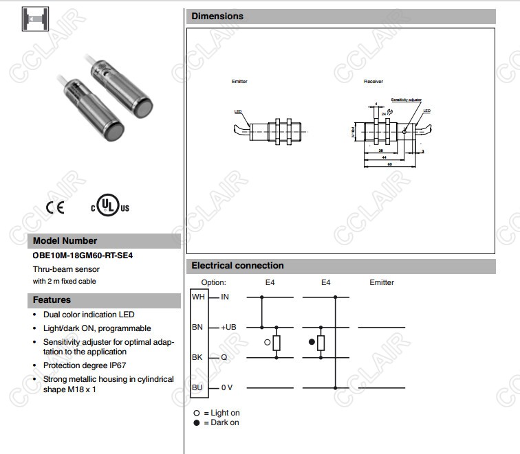 OBE10M-18GM60-RT-SE4,對(duì)射型傳感器