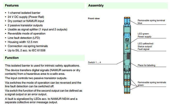 KCD2-SOT-Ex1.LB.SP,開關(guān)量輸入安全柵