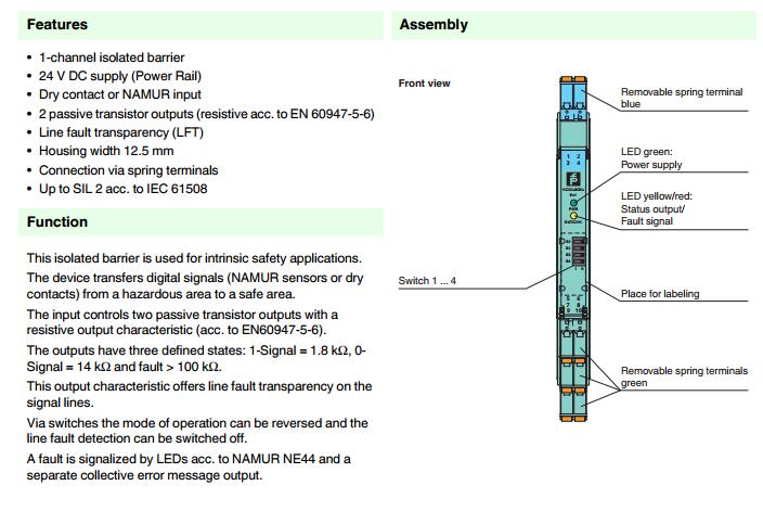 KCD2-SON-Ex1.SP,開關量輸入安全柵