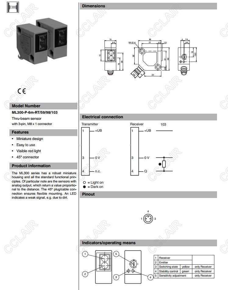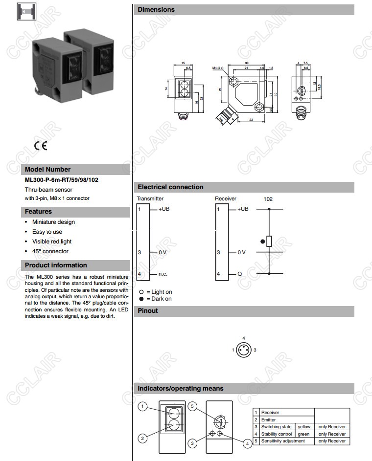ML300-P-6m-RT/59/98/102,ML300-P-6m-RT/59/98/103,對(duì)射型傳感器