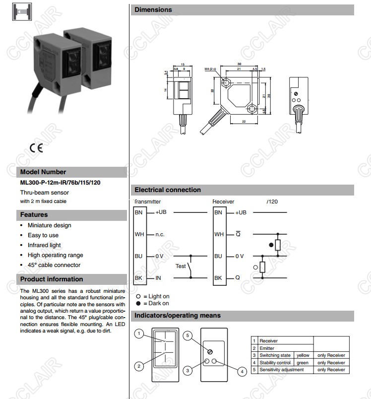 ML300-P-12m-IR/76b/115/120,對射型傳感器