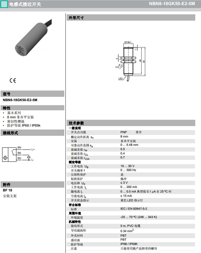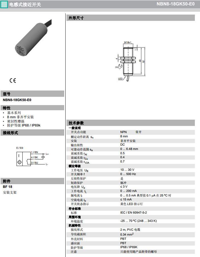 NBN8-18GK50-E0,NBN8-18GK50-E0-5M,NBN8-18GK50-E2,NBN8-18GK50-E2-5M感應(yīng)式傳感器